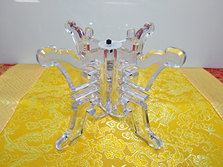 對插式收納腳架不占空間,塑鋼材質堅固耐用,透明水晶盤優雅高貴。